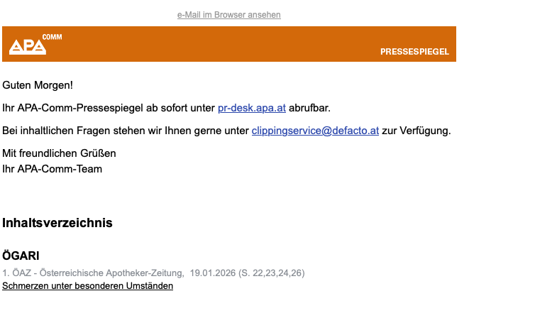 Lesen Sie dazu den Artikel der Österreichischen Apothekerzeitung vom 19. Jänner 2026